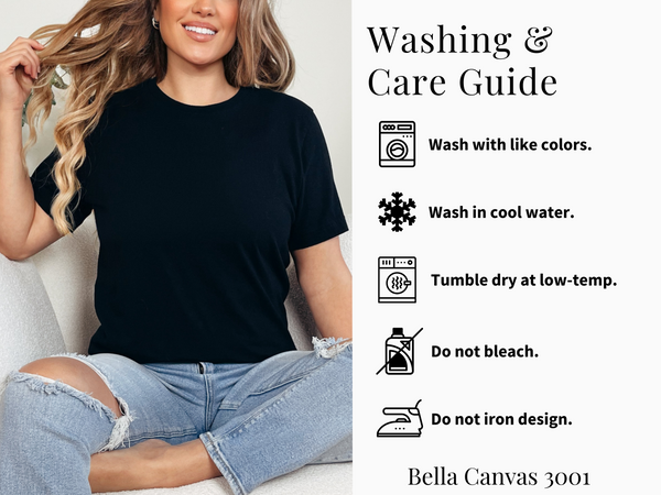We print on Bella + Canvas because they’re actually comfy and high-quality (aka, not the scratchy, cardboard-feeling tees you hate). Their shirts are made with super-soft Airlume combed and ring-spun cotton that holds up to real life — washing, wearing, and living in them without falling apart. Bella + Canvas also focuses on ethical production: no sweatshops, eco-friendly practices, and made right here in the USA.