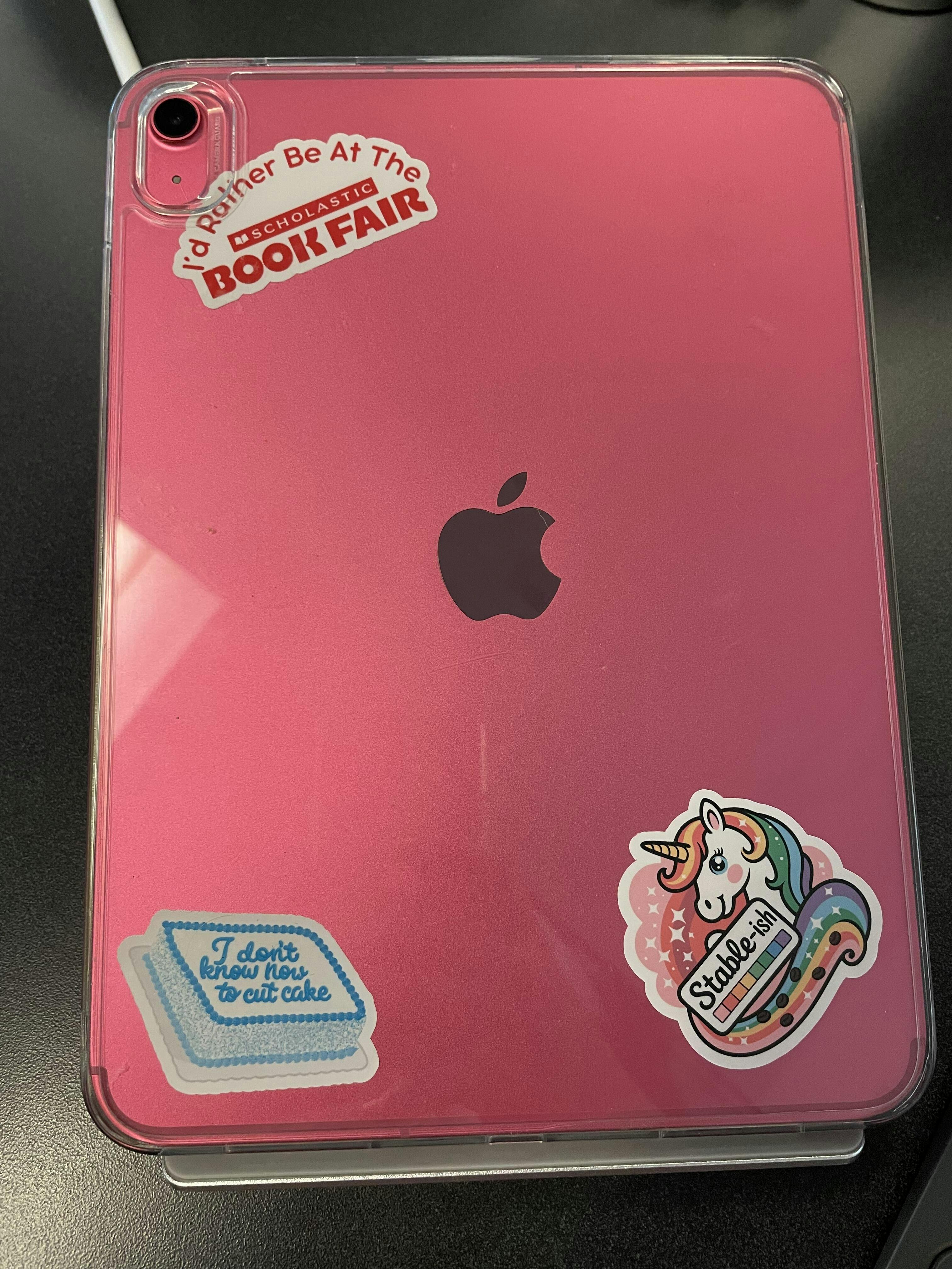 The sticker is an excellent quality vinyl sticker. The back easily peeled. This sticker is currently living on my ipad where I read books on my Kindle.